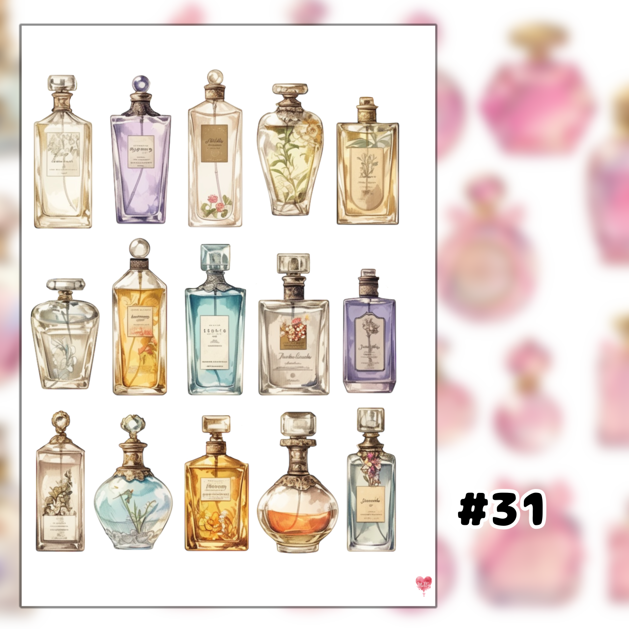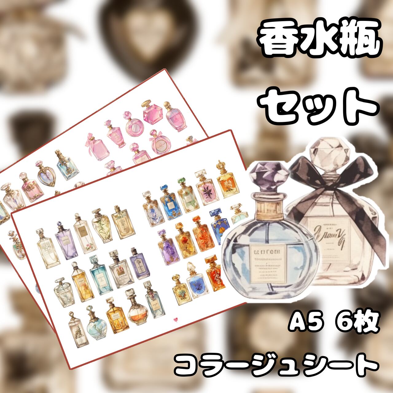 色んなジャンルの使いやすい香水ビンの素材シートです♩